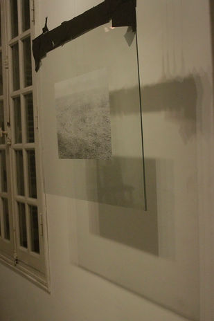 Bức vẽ được đặt giữa hai tấm kính mỏng, trong suốt, cố định với nhau bằng băng dính màu đen và được treo lơ lửng trên trần nhà bằng dây cước.