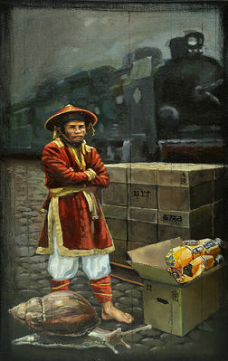 Nguyễn Mạnh Hùng với loạt tranh sơn dầu mang phong cách siêu thực quen thuộc, đậm nét châm biếm đặc trưng và giễu nhại đầy hóm hỉnh về một thế giới phi lý - một 'Thời Hậu Thánh';